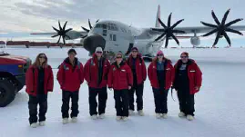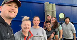 Dr. Katie Howe (Postdoc), Lydia Hayes-Guastella (PhD student), and Kristen Lamprect (PhD student) from the Kiel Reese lab are currently on a research expedition from New Zealand to the Ross Sea (near Antarctica) funded by the National Science Foundation (Award number 2044453 to BKR).