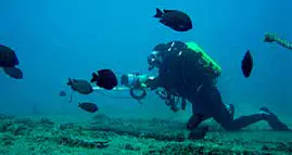Underwater pumpkin carving and dive training