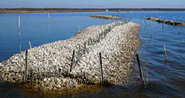The Nature Conservancy and the Dauphin Island Sea Lab worked together to collect oysters from deteriorating breakwaters removed from Coffee Island. The oysters were resettled at the Lightning Point Living Shoreline.