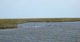 During the last few months, residents and visitors may have seen small, gray canvas decoy dolphins on the beaches and marshes around Dauphin Island. These decoys were part of a public sighting and reporting assessment project.