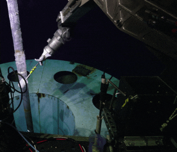 So, here is where the household items come in: on the next dive, we asked the JASON team to send down a TOILET BRUSH to scrape along the outside of the pipe at the end of the dive. They strapped it to a metal handle that the manipulator arms could easily grab, and we were off! We were able to successfully collect this sample and we cannot wait to work with this organism.
