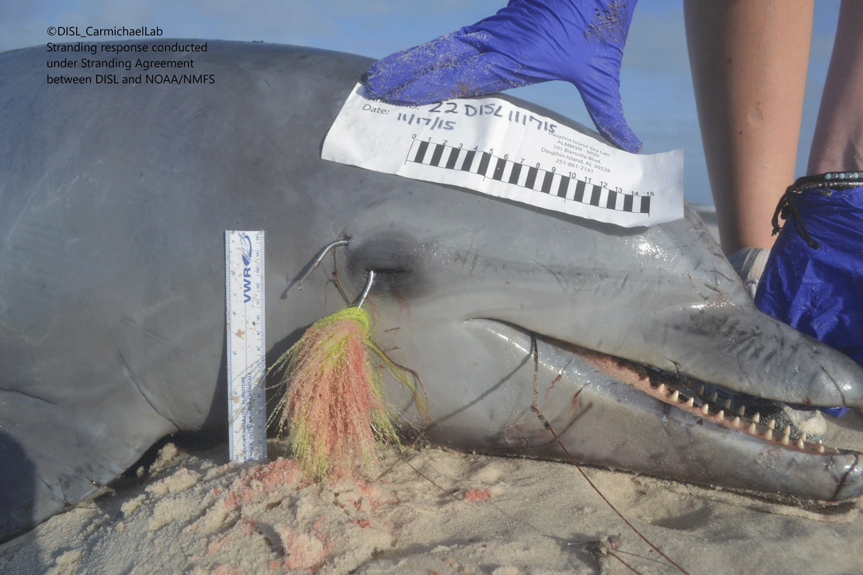 Be sure to report any sick, injured, and/or deceased marine mammals in Alabama to the 24/7 ALMMSN Stranding Hotline 1-877-WHALE-HELP (942-5343).