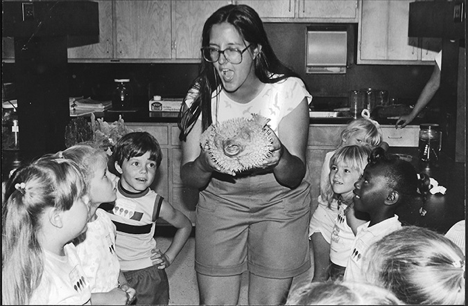 Stephens recalled one of those moments during a summer camp when a little boy became interested in a school of tiny burrfish at the beach. Jenny encouraged the doubtful student to go catch some of those fish.