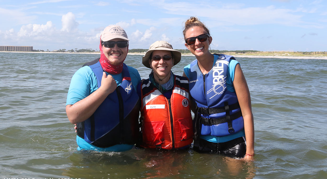 In late September 2018, health assessments were performed on common dottlenose dolphins (Tursiops truncatus) off the coast of Dauphin Island for the first time, and Dauphin Island Sea Lab researchers were part of that effort.