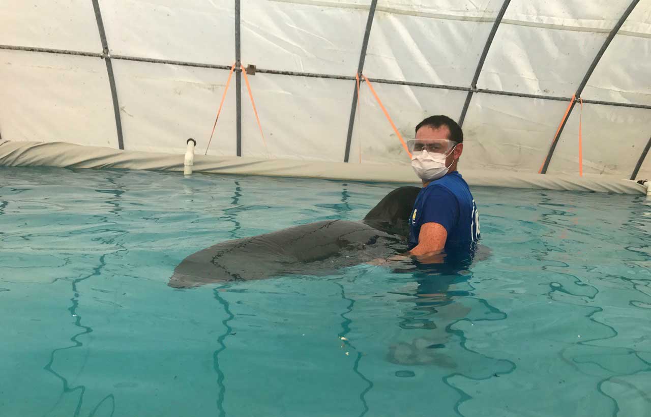 The ALMMSN team brought the whale to the Institute for Marine Mammal Studies (IMMS) in Gulfport, Mississippi for rehabilitation.