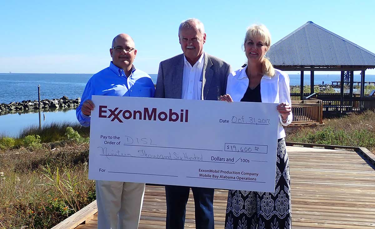 Community Contributions: The Dauphin Island Sea Lab appreciates the continued support of the community. For more than 20 years, ExxonMobil has supported DISL with an annual contribution. This year's nearly $20,000 donation will go to support University Programs, Discovery Hall Porgrams, BayMobile, and DISL's Graduate Student Association.