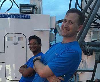 Dr. Jeffrey Krause and Dr. Kanchan Maiti aboard CLASiC cruise. (Photo credit Rebecca Pickering-Turner)