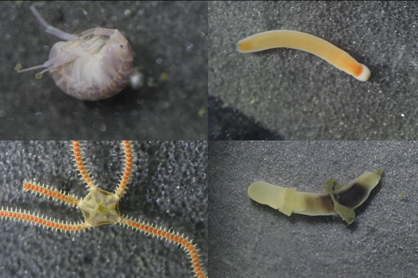 To explore the relationship between bioturbation and acoustic signal behavior, we targeted an area of the shelf called the New England Mud Patch. This area has thick muddy sediment filled with infauna such as burrowing brittle stars, worms, tube-building shrimp, and sea pens. We collected sediment and acoustic measurements using a multicorer, which retrieves sediment samples from hundreds of feet below the surface. We took acoustic measurements of the mud inside the tubes, then washed the mud through a sieve to see what kind of infauna were living in it at the time of collection, and brought those animals back to DISL.