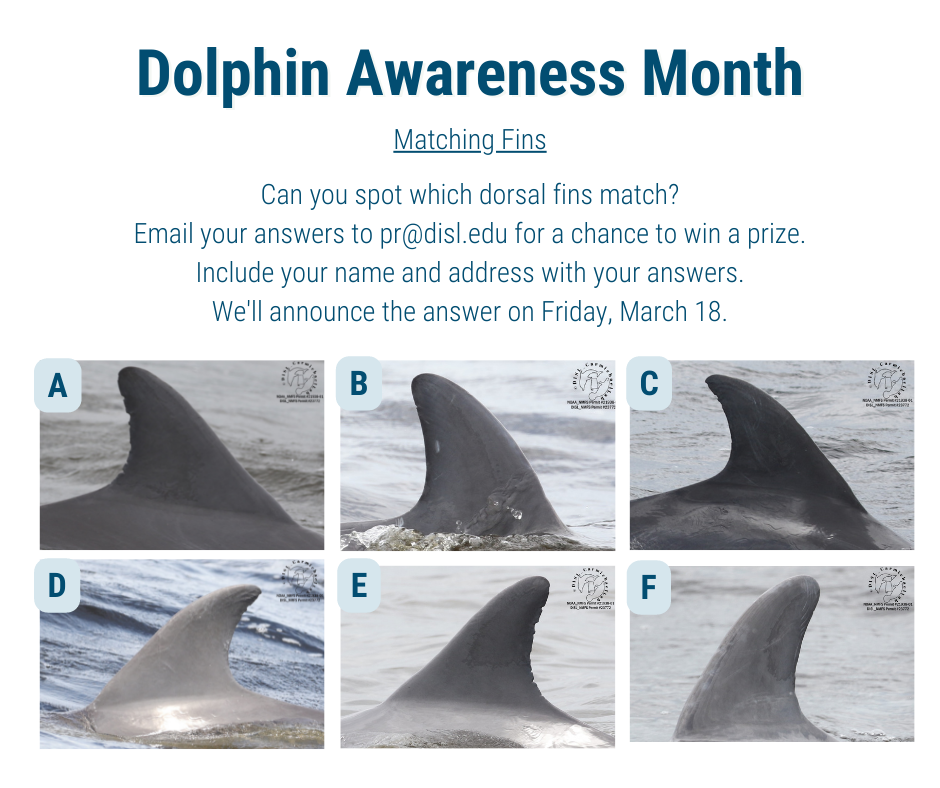 Here's your chance to test your dolphin dorsal fin identification skills. Match the similar dolphin dorsal fins in the picture.