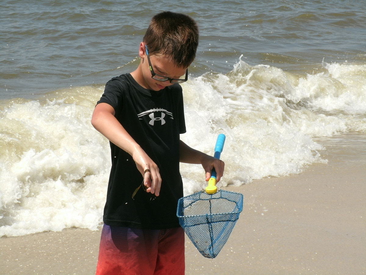 There are three opportunities for the Salt Marsh Excursion on July 12, 19, and 26. Learn how to use seine nets and sieve boxes to collect samples, including crabs, snails and fish. All animals will be released back into the marsh after a discussion. Learn why salt marshes are an important ecosystem and how they support the seafood we enjoy. It's suggested to wear closed-toe shoes that tie or strap-on, such as old tennis shoes. Please no flip-flops or slip on shoes as they may be eaten by the marsh mud. You'll also want to wear clothes that can get wet and muddy. Showers and changing facilities will be available. Make sure to bring a hat, sunscreen, water bottle, towel, and change of clothes.