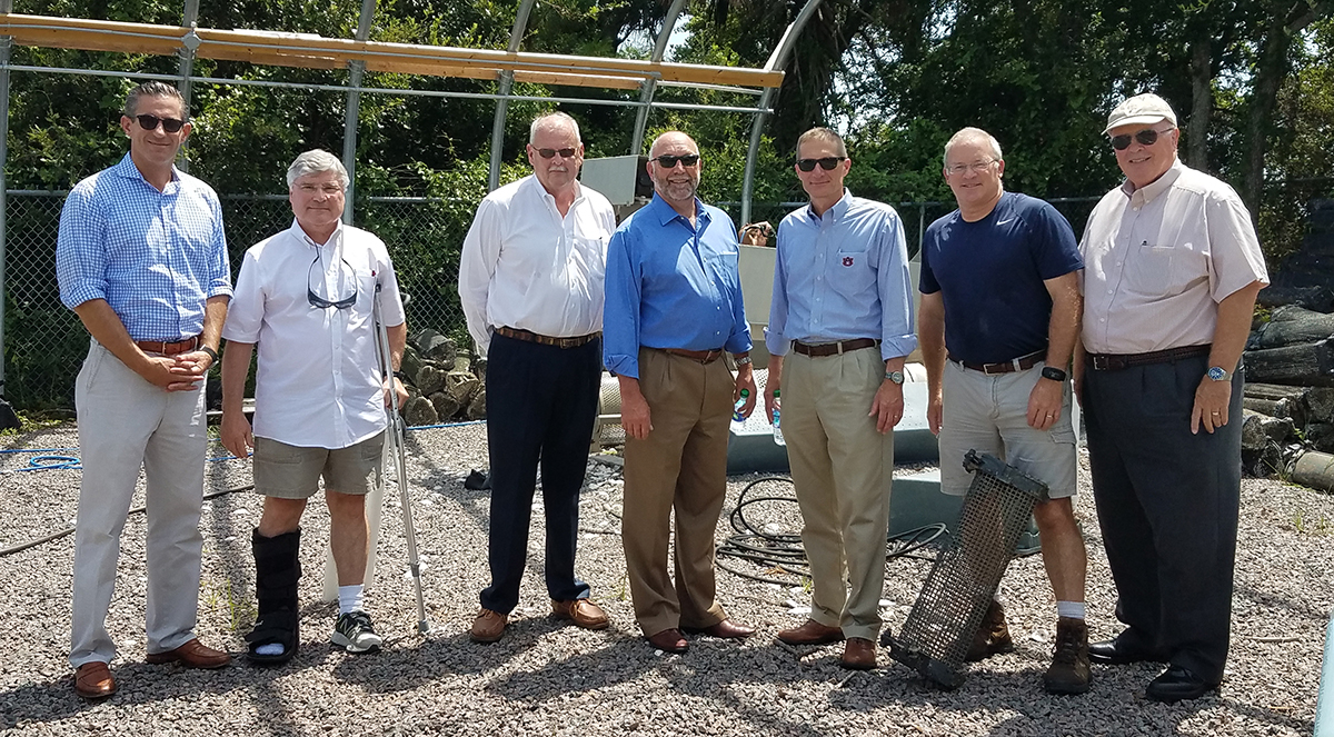 The first stop on Dr. Leath's tour was the Auburn Shellfish Laboratory. The Shellfish Laboratory has been instrumental in the oyster farming industry across coastal Alabama. Hatchery manager Scott Rikard led the tour of the shellfish laboratory explaining the process, and the tools used by oyster farmers.