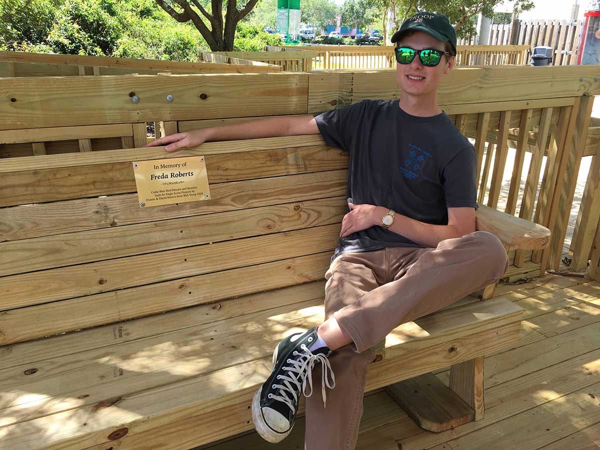 Dustin enlisted the help of his fellow Scouts to build 19 bird houses that have been installed around campus to promote more birds. David completed three wooden benches that were placed along the Estuarium boardwalk for visitors. One is in honor of Freda Roberts, the second Executive Director of the Dauphin Island Sea Lab Foundation and mother of DISL staff member Lori Angelo.