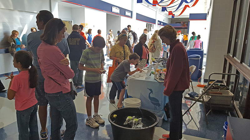 BEST student teams competed against each other in robot design, marketing presentations, educational exhibits and team spirit. At the Dauphin Island Sea Lab exhibit, students had the opportunity to learn about underwater robotics by driving an ROV in an indoor tub and exploring how ROVs are used in the oceans and various technical careers.
