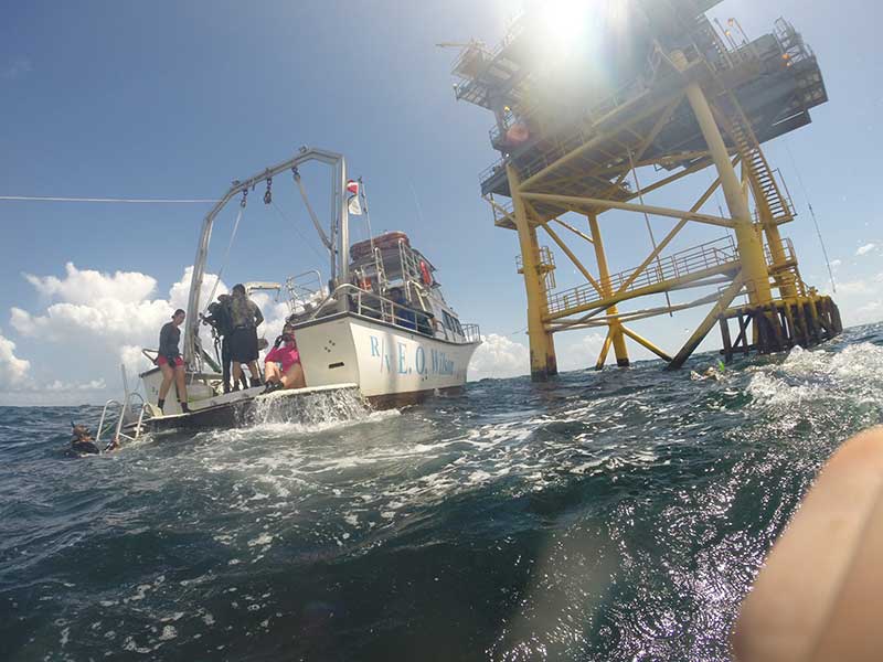 The classes met the day before heading offshore to create a plan. Dr. Dorgan's students requested pictures from the rig Lockridge's students would be diving in order to get a deeper understanding of how diversity changes with depth.